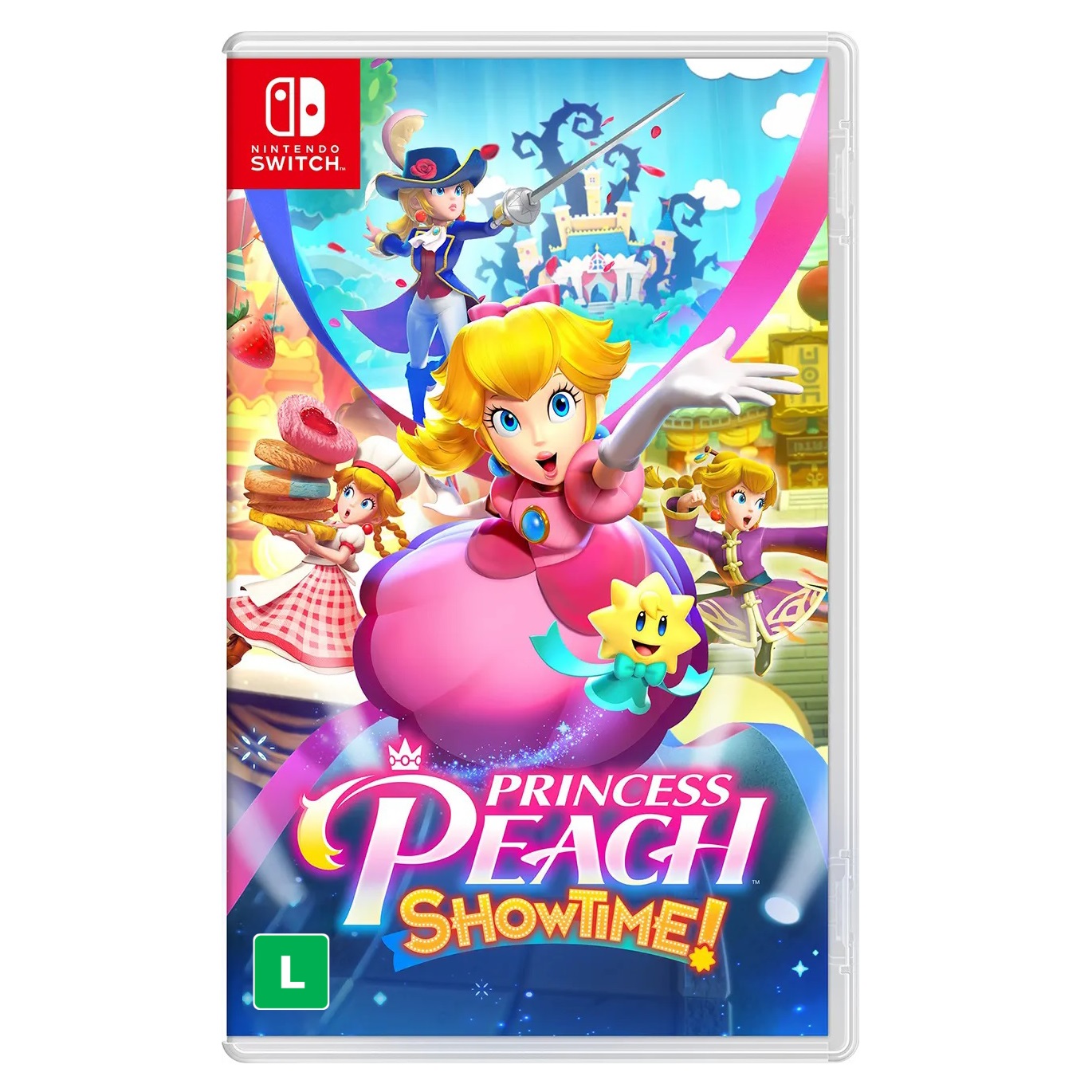 Princess Peach Showtime! para Nintendo Switch coloca a icônica princesa da franquia Mario no centro do palco em uma aventura repleta de ação e magia. Explore diversos cenários encantadores, resolva puzzles criativos e enfrente inimigos desafiadores enquanto ajuda Peach a salvar o Mushroom Kingdom mais uma vez.